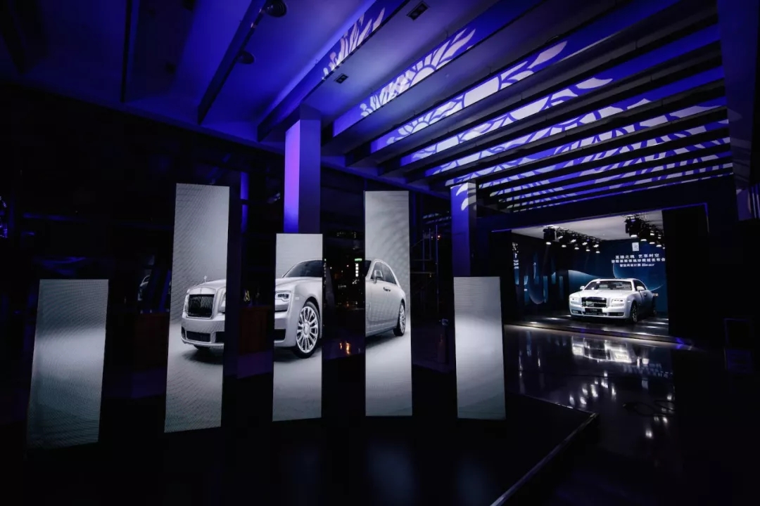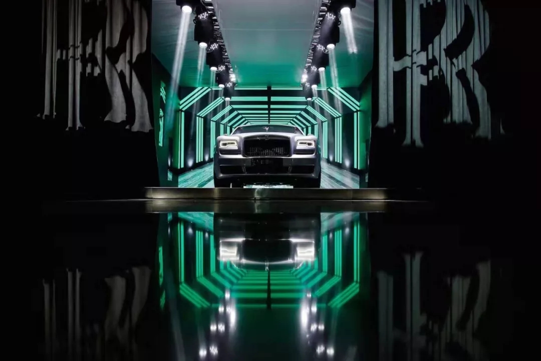 以此为样本,【金象创造】设计了六款个性化定制的车库,运用一点透视的车库设计手法诠释车辆的静置空间,营造主视觉冲击力。现场随着音乐、画面和灯光的切换,达到空间的立体穿透感,“劳斯莱斯银魂珍藏版”揭开神秘面纱后,以虚实结合的感官效应让嘉宾具象的感受车辆停放效果。