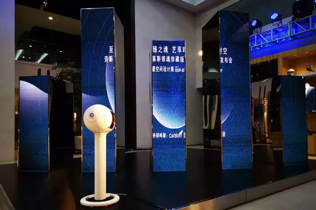 一组多屏装置,人为的错落感、不规则的播放画面犹如跳跃的音符,展示空间设计艺术。配以LV旗下的“爆炸音响”王者帝瓦雷 Gold Phantom的音响效果,为客户提供别样的视听感受 。让嘉宾们实现与“银魂”的时空对话,品鉴从毛坯到精装的整个空间设计衍化过程,感受到了动静结合的至臻奢华。