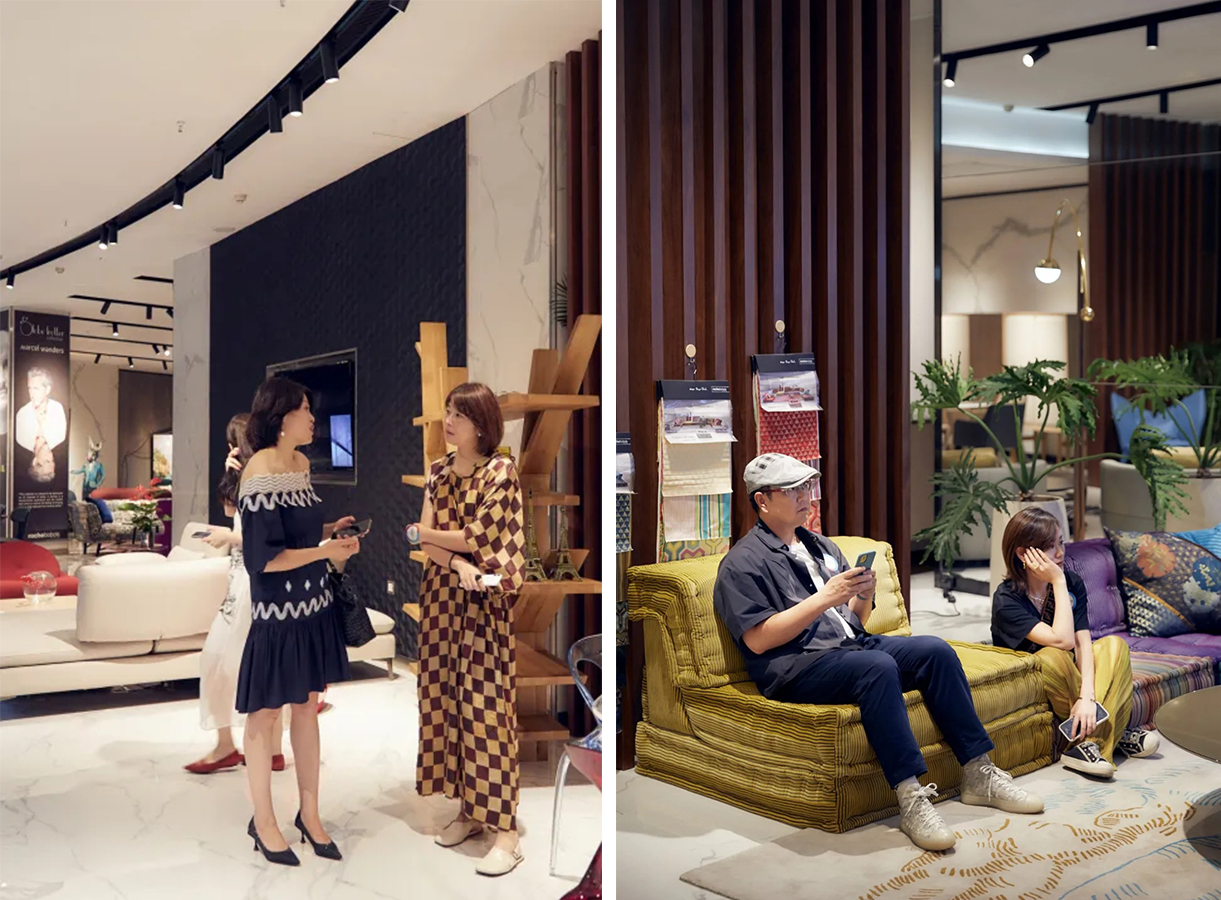 活动的首站便是rochebobois 罗奇堡展厅,这是一个法国最有影响力的高端家居品牌,在郝总的带领下参观了整个展厅。这里有自由组合的Mah-Jong“麻将沙发”、历任法国总统钟爱的泡泡沙发;悬空感时尚茶几、薇娅同款办公桌、“环球旅行家”客厅系列等产品。品质在细节,近距离地探索和体验法兰西优雅的家居生活。