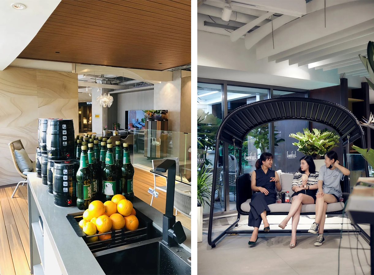 下半场活动在Comfeel康菲国际户外家居的展厅内举行,作为专注进口高端户外家具和户外饰品的户外家居品牌,赖总特意在此准备了一场高逼格的夏日轰趴,体验品质生活,享受美好时光。
