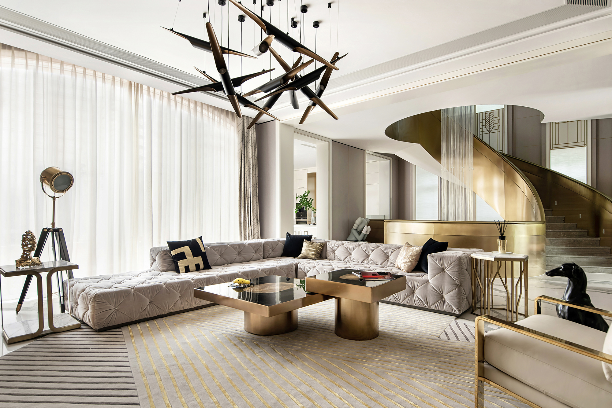 This case is a mixture of the designer's tribute to the classic Art Deco decoration style in the film "the Great Gatsby" and the modernism expression in the film "50 degrees gray". The space is permeated with geometric lines, wheat ear elements, marble and copper metal materials are matched. The color setting is mainly composed of high-level cold colors of black gold and gray white, which deduces the visual beauty of the space. It seems simple but contains a hidden aristocratic temperament with high grade, which is low-key and luxurious.