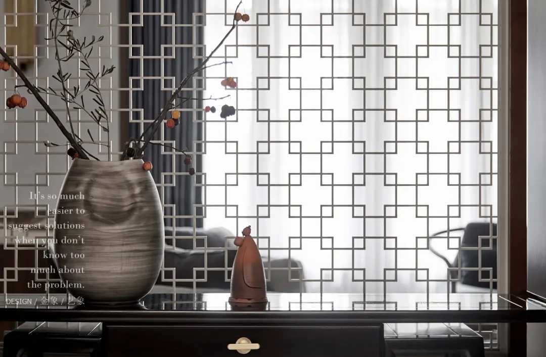 轻薄的窗格挡不住满室的光线,隔而不断、引人深入。让你在这一处尽享另一处的光景。金属与木头的碰撞,浅色与深色的穿插,空间简单却不再单调。