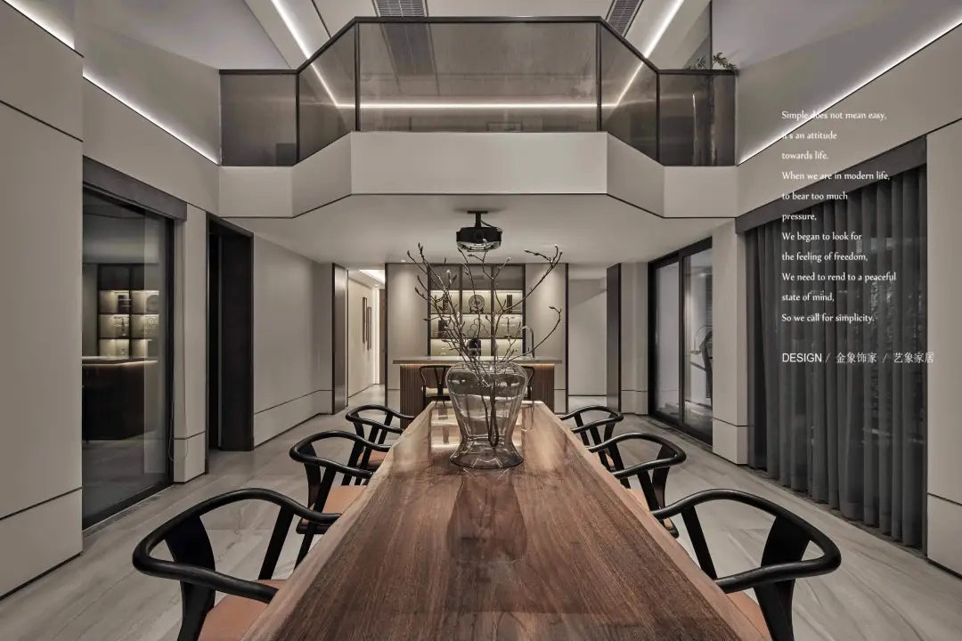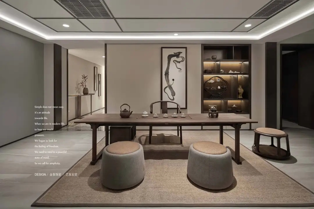 The warm woodiness and exquisite porcelain make people unconsciously want to taste the good tea in the cup with the smoke floating in the master's hand. The sense of vision brought by the space transformation drives the rhythm of downstairs life. It doesn't need too much modeling and form to dress up, but only enjoys the overlooking.