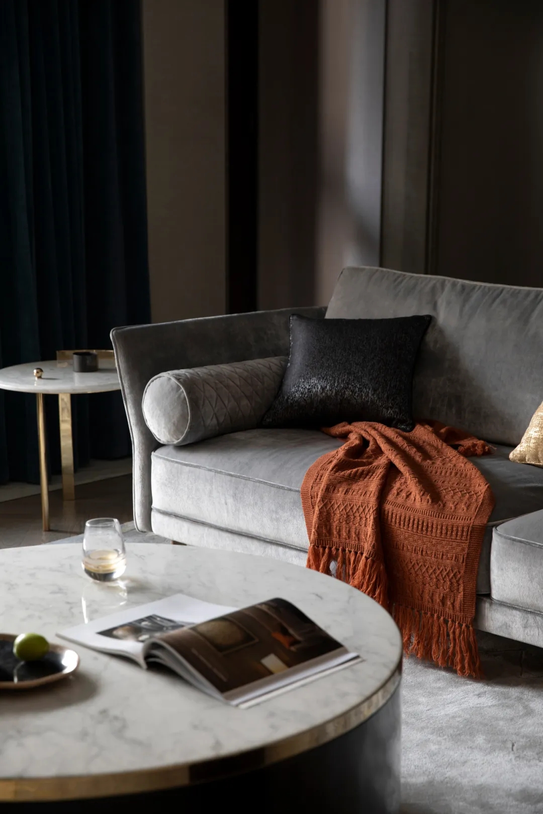 柔和的灰色调搭配点睛橙,整个空间充满了个性、时尚、不羁。高级灰与橙色这对CP是追求都市雅痞钟情的家居配色,时尚的格调、高端的质感、优雅的品位。