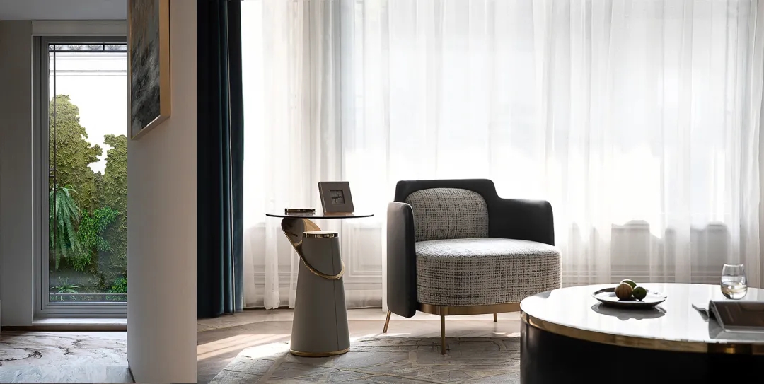 The elegant blue silk lies on the bed lazily, and the simple light luxurious bedside chandelier with geometric metal lines adds color to the space and spreads the art. Open up your magazine and enjoy your time.