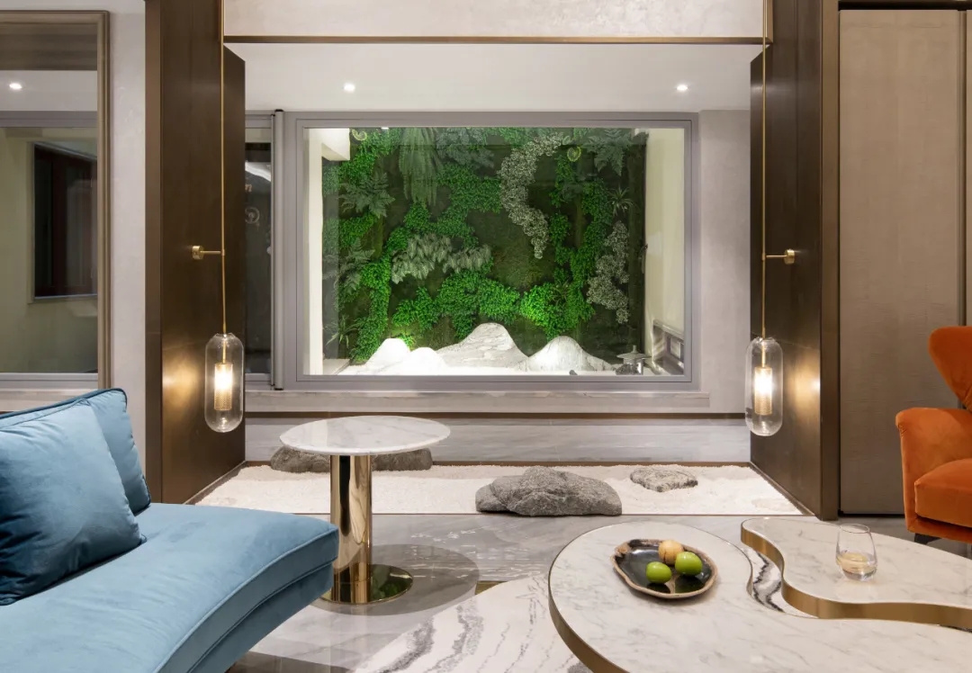 The lush green plants shape the natural oxygen bar in the family, exude the flavor of forest, explore space with the help of the power of nature, and adhere to the integration of human, nature and art.