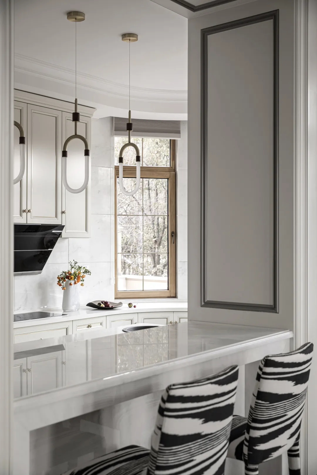 黑白斑马纹椅在素色的餐厅空间里起到点睛之笔,时尚与美感共存,展现了主人优雅非凡的艺术品位。