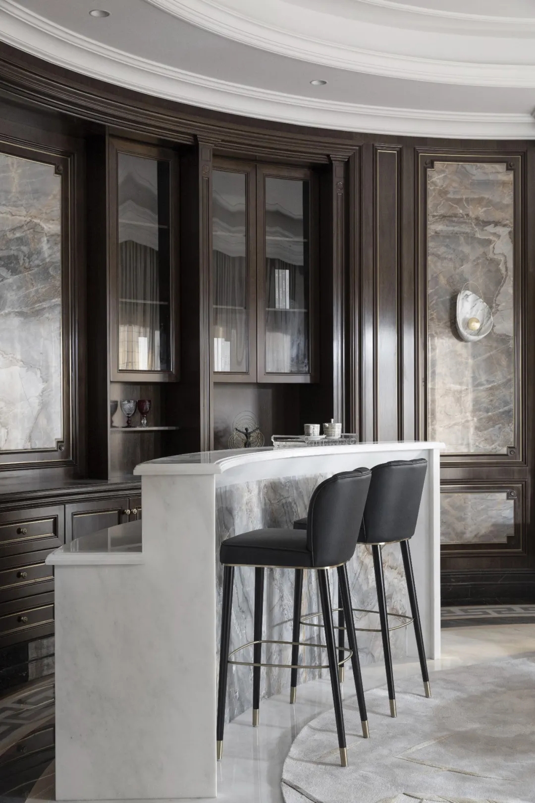 吧台增添了几分情趣,闲暇日子里邀请三两好友一起享受小酌微醺的愉悦,举杯畅聊过往岁月以及怀揣梦想的诗与远方。