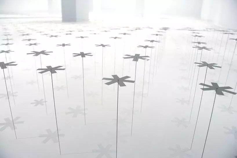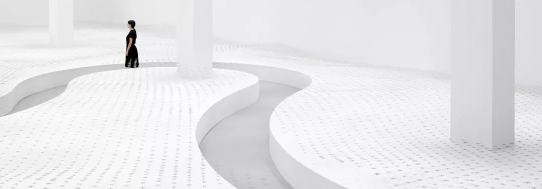 和冷气制造商Daikin打造的种满17000朵“花”的纯白花园(沉浸式展“微风”),基于“隐形空气”概念,将偏振膜制成的“花”,分别被安插在不同的高度,让整个空间看起来更接近一个高低起伏的山野,当微风吹过花海便掀起波浪,概念浪漫无比。