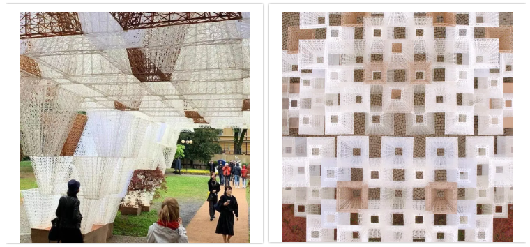 COS和建筑师Arthur Mamou-Mani合作打造了“Conifera”装置,将未来科技、创新材料与这座建于16世纪的文艺复兴式建筑结合。Conifera包括700多个相互锁扣连接的3D打印生物砖,从宫殿的庭院内一直延伸到花园以外。这是一座利用数字化技术设计和建造的建筑结构,其开口处由不透明的木材和生物塑料砖建成,此后建筑上所用的材料逐渐过渡到半透明的生物塑料砖,为参观者提供移动式的安装过程体验。
