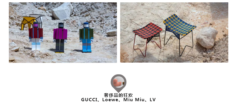 这年头家具的实用性已是次要,能让人从压力中逃脱、愉悦到升空才是厉害本事——本届的Marni不仅有室内展厅,还在室外建造了“月球表面”,一大波外星朋友正在等你。宇宙飞船茶几、外星动物雕塑和椅子,如同四处散落的星骸,满眼未来感的几何线条、异域的部落图腾,仿佛置身异世界,家具的定义在“失重“空间被轻巧颠覆。