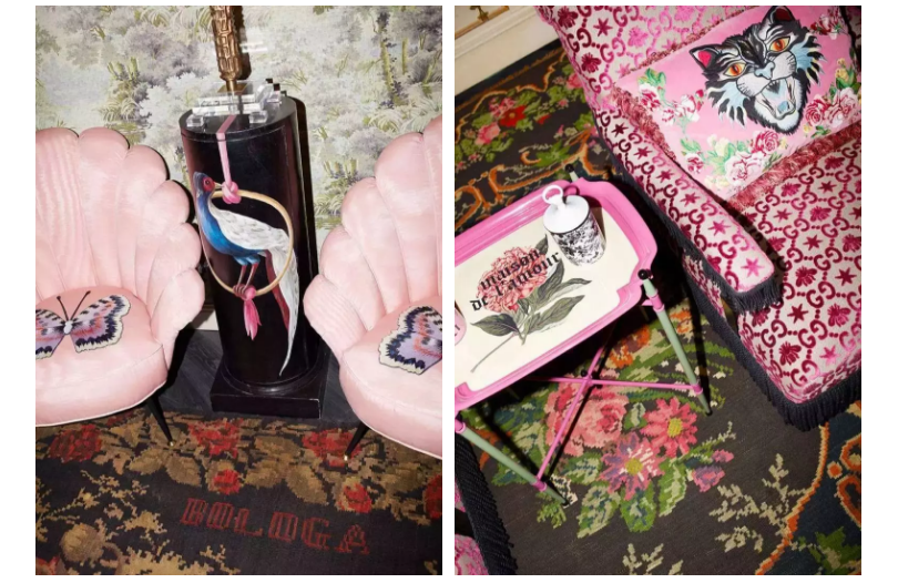 Gucci的创作总监Alessandro Michele为米兰设计周设想了一幢“古玩公寓”,将他在时装上发挥不完的浪漫情怀无限扩大。时装系列中的植物和动物,集体迁徙到家具上。以Décor为名,摆明是和一般家饰划清界限,目光所及都极尽浓艳,让人完全浸泡在极繁世界。